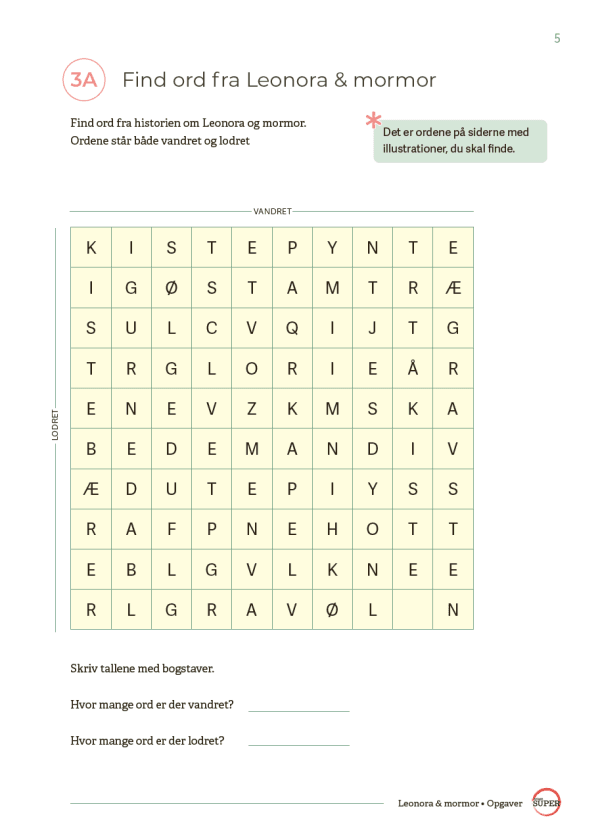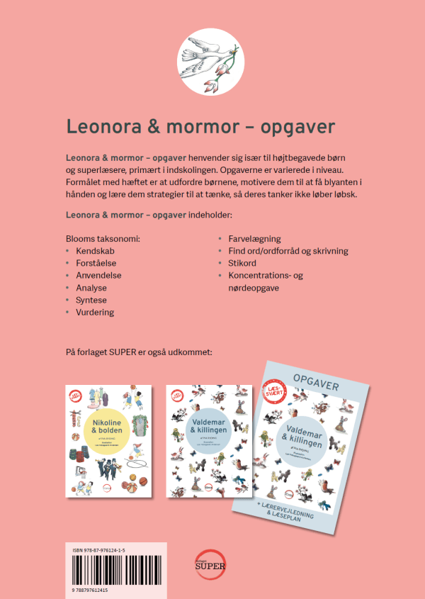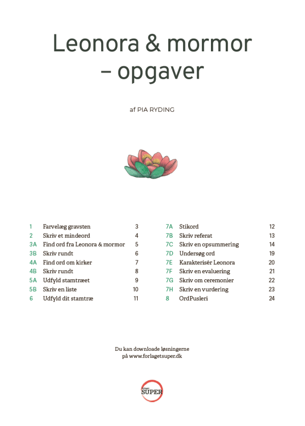 Hæftet er målrettet elever, der har brug for ekstra udfordrende opgaver. Ønsker du at bruge hæftet og/eller opgaverne til hele klassen, kan du med fordel kigge på Leonora & mormor, opgaver, lærervejledning og læseplan. Løsninger er inkluderet i materialet, som du finder her.